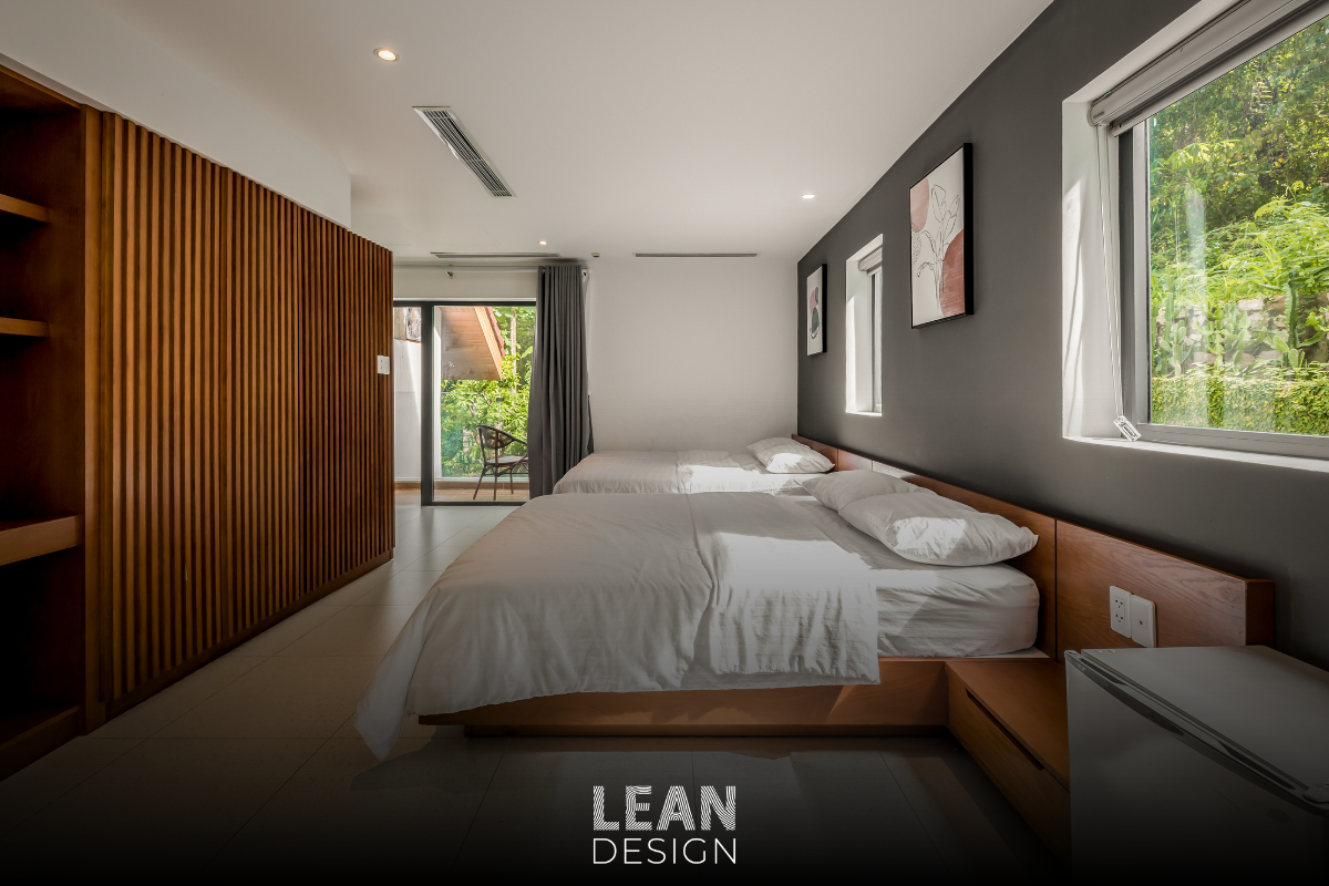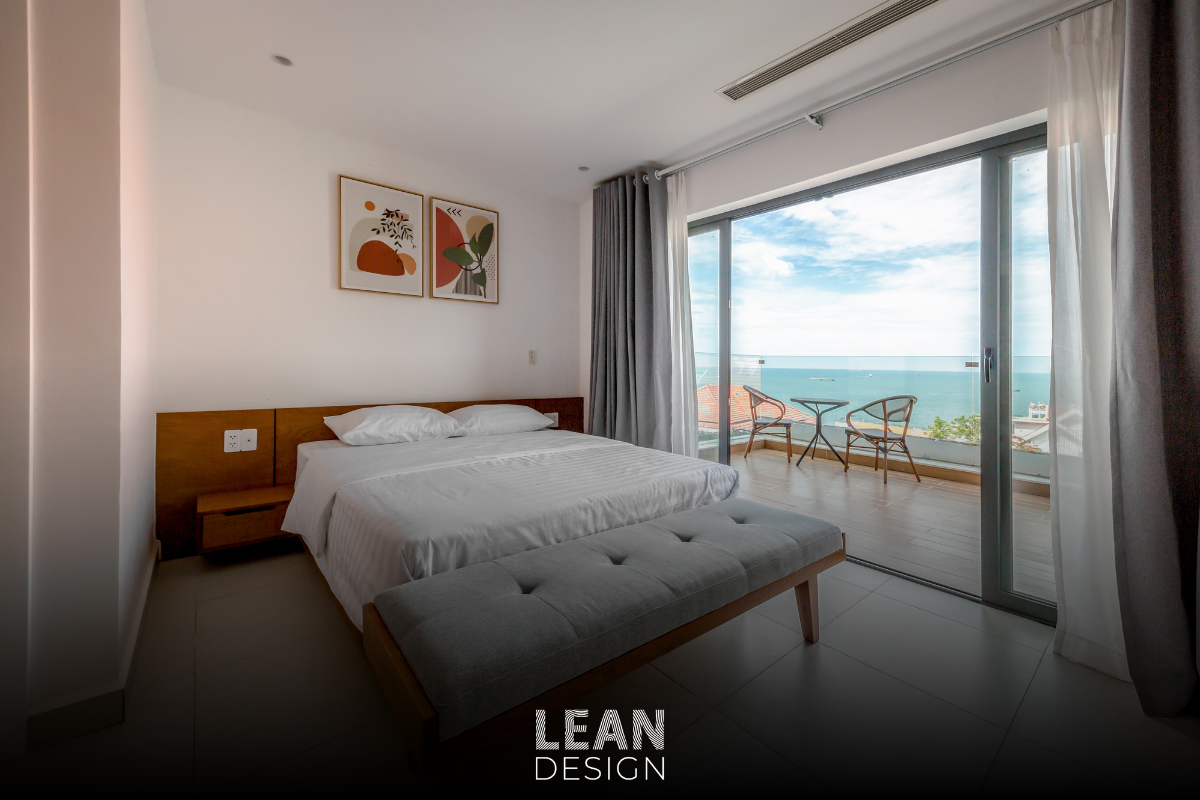 Ban công, sân hiên, và khoảng mở được sắp đặt hợp lý, để không gian nghỉ ngơi trở nên trong trẻo, nhẹ nhõm – không cần điều hòa, chỉ cần hơi gió biển và bóng mát của những tán sứ.